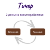 Тичер общается с ребёнком, используя различные коммуникационные каналы: показывает, как пишется и произносится слово, а также тренирует использование слова через демонстрацию картинок, звуков, и решение примеров для быстрого запоминания.