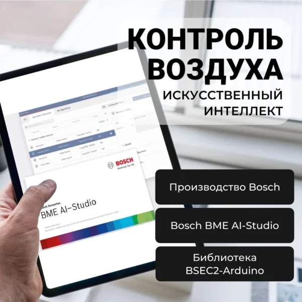 С помощью библиотеки Bosch BME AI-Studio и BSEC2-Arduino можно реализовать индивидуальный анализ газов с помощью ИИ для обнаружения и анализа конкретных газовых профилей.