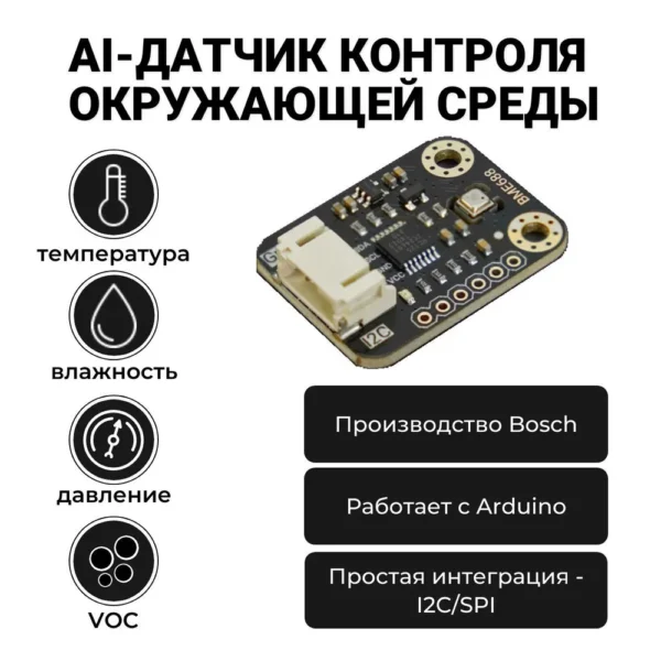 Датчик Gravity BME688 идеально подходит для мониторинга качества воздуха в помещении, обнаружения вредных летучих органических соединений и предоставления данных в режиме реального времени для «умных» домов.