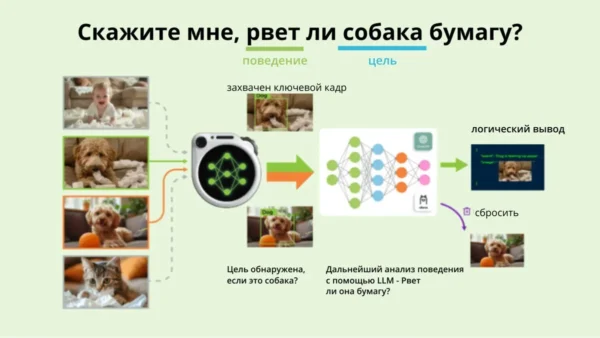 Например, если нужно определить, рвет ли собака бумагу, модель на устройстве сначала находит собак, а затем отправляет ключевой кадр в LLM для дальнейшего изучения. Это позволяет избежать необходимости запускать LLM для анализа изображений людей, кошек, белок или других объектов, что значительно снижает затраты.